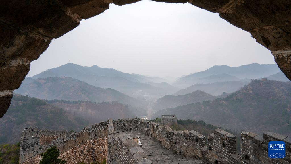 这是4月15日在河北省承德市滦平县拍摄的雨后金山岭长城晨景。