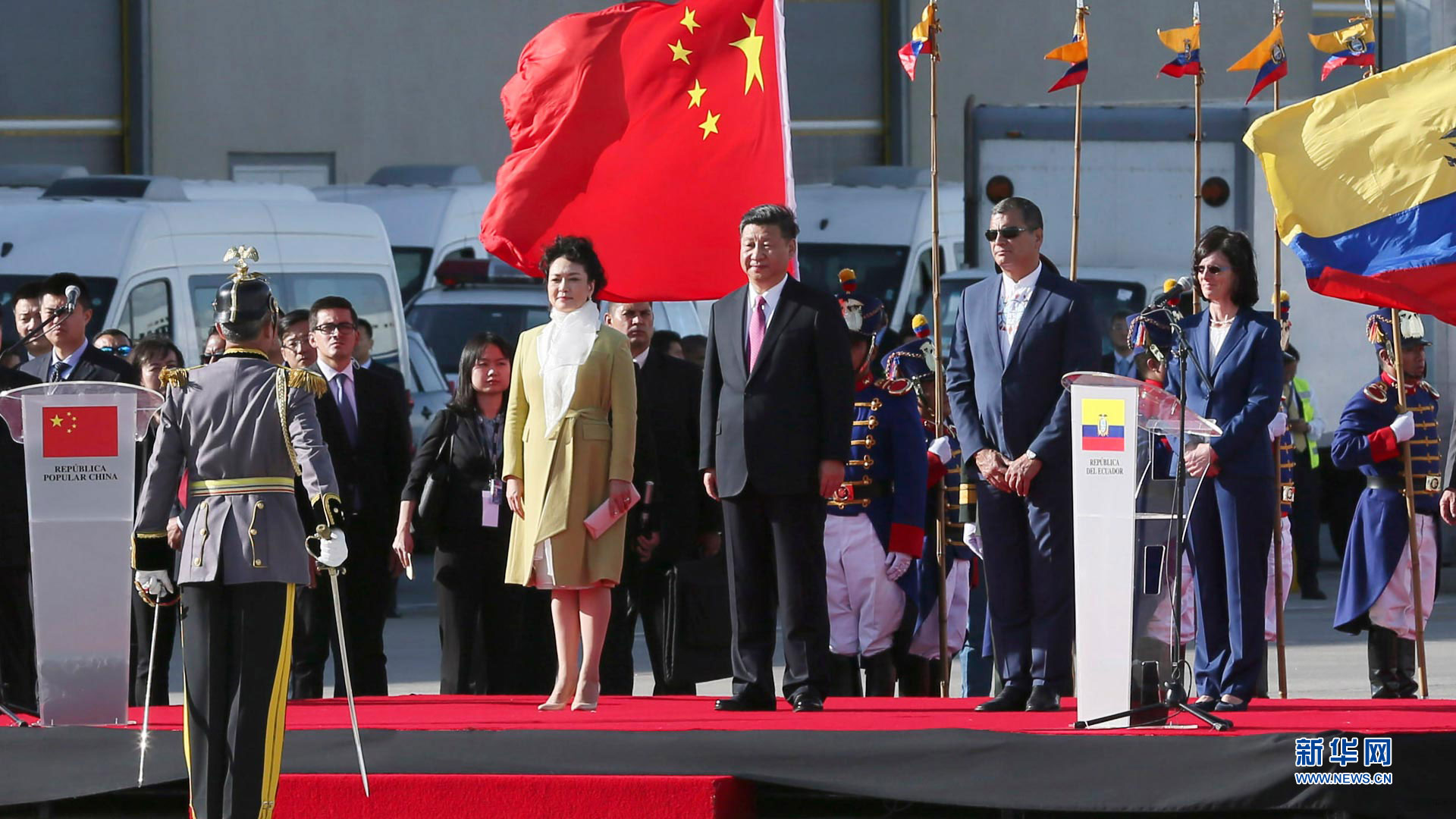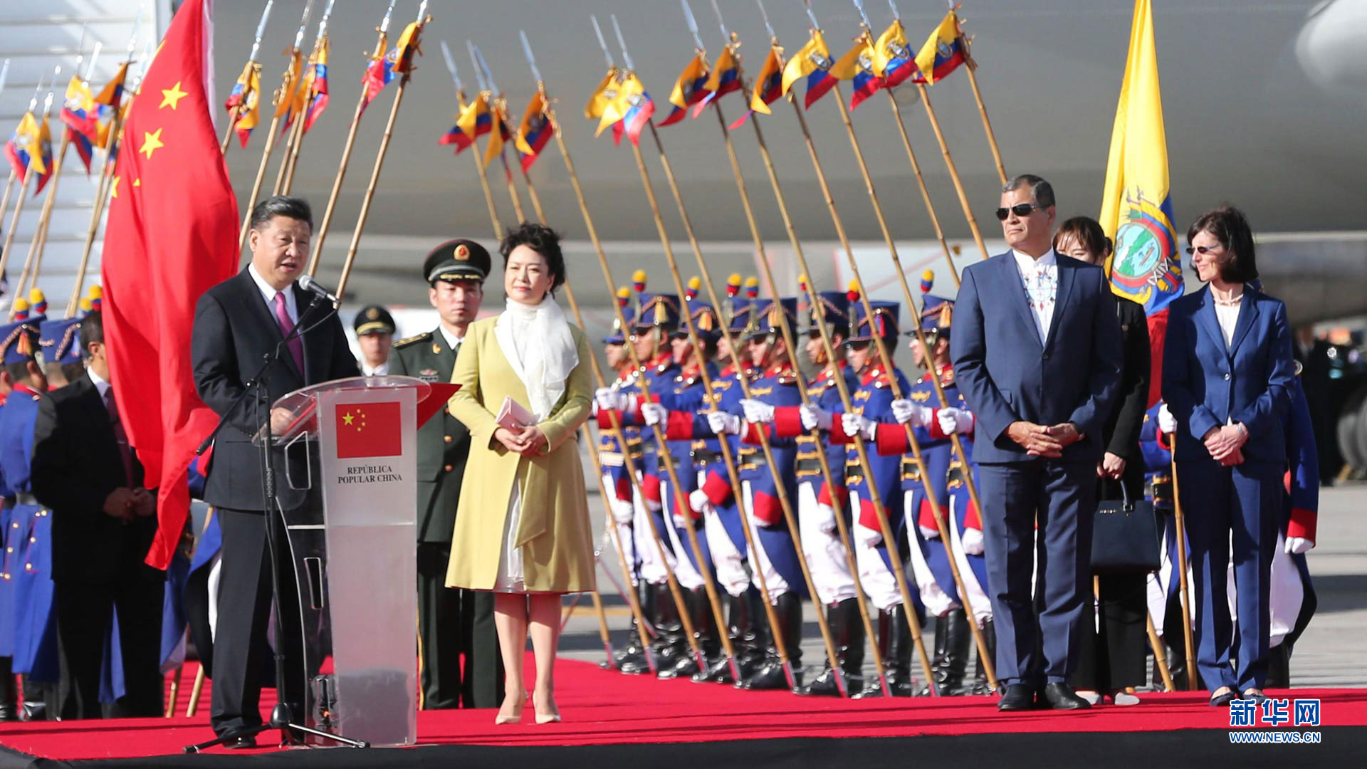 當(dāng)?shù)貢r(shí)間11月17日,國(guó)家主席習(xí)近平乘專機(jī)抵達(dá)基多,開(kāi)始對(duì)厄瓜多爾共和國(guó)進(jìn)行國(guó)事訪問(wèn)。這是厄瓜多爾總統(tǒng)科雷亞在機(jī)場(chǎng)為習(xí)近平舉行隆重歡迎儀式。新華社記者 蘭紅光 攝2016-11-18