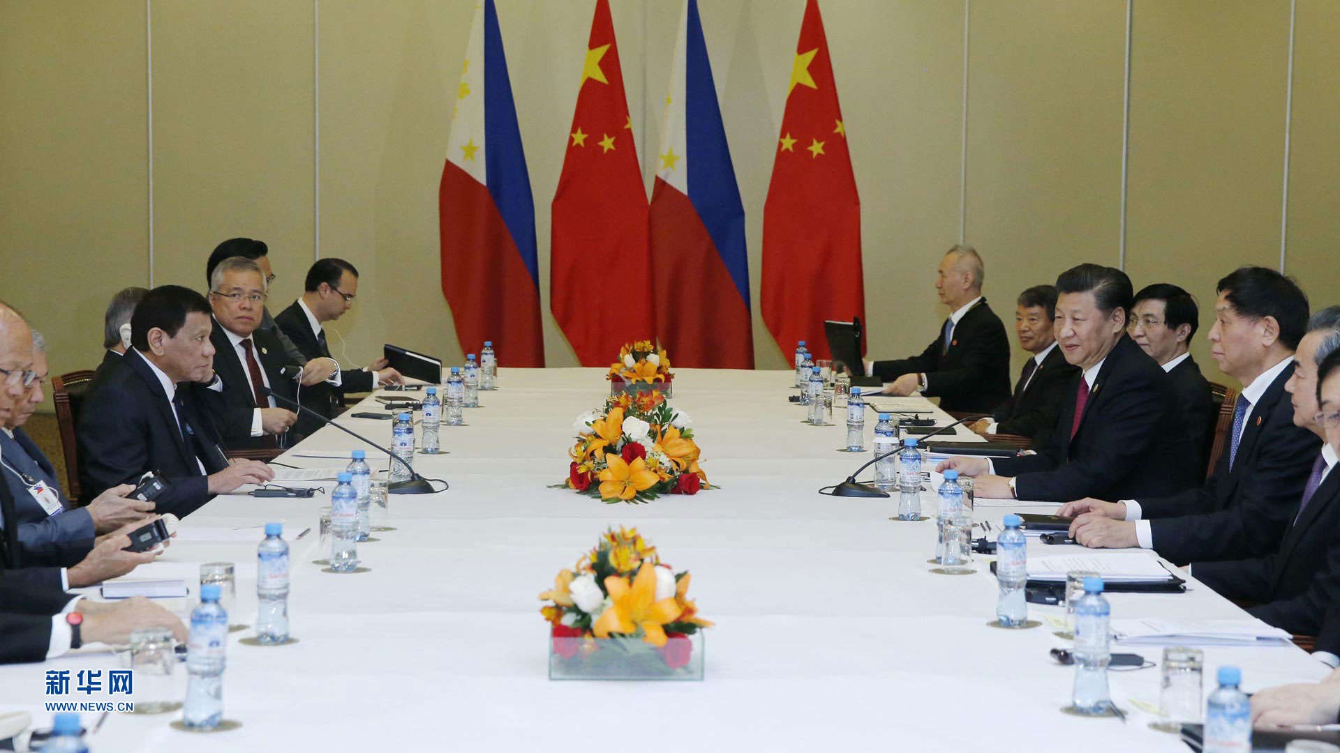 11月19日,國(guó)家主席習(xí)近平在利馬會(huì)見(jiàn)菲律賓總統(tǒng)杜特爾特。新華社記者 鞠鵬 攝2016-11-20