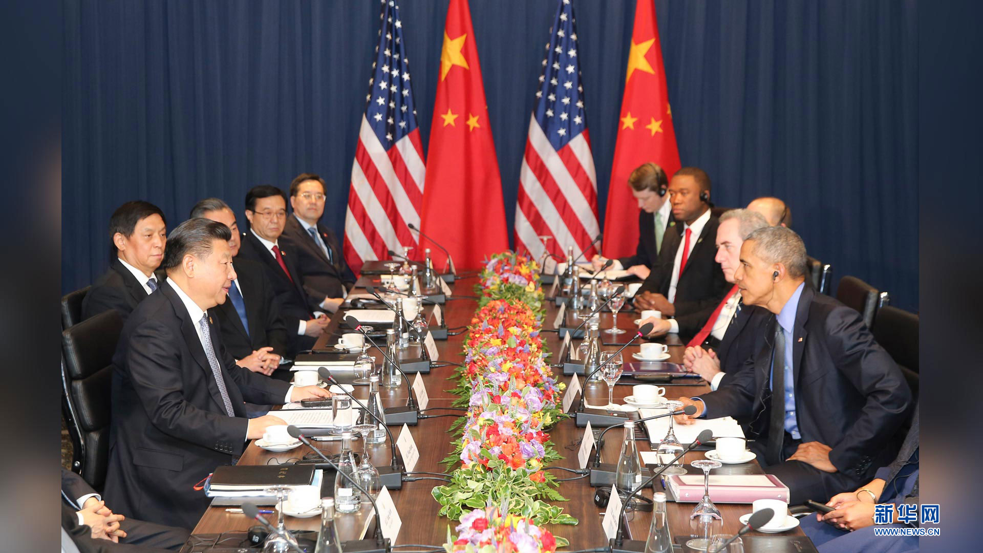 11月19日,國(guó)家主席習(xí)近平在利馬會(huì)見(jiàn)美國(guó)總統(tǒng)奧巴馬。 新華社記者蘭紅光 攝2016-11-20