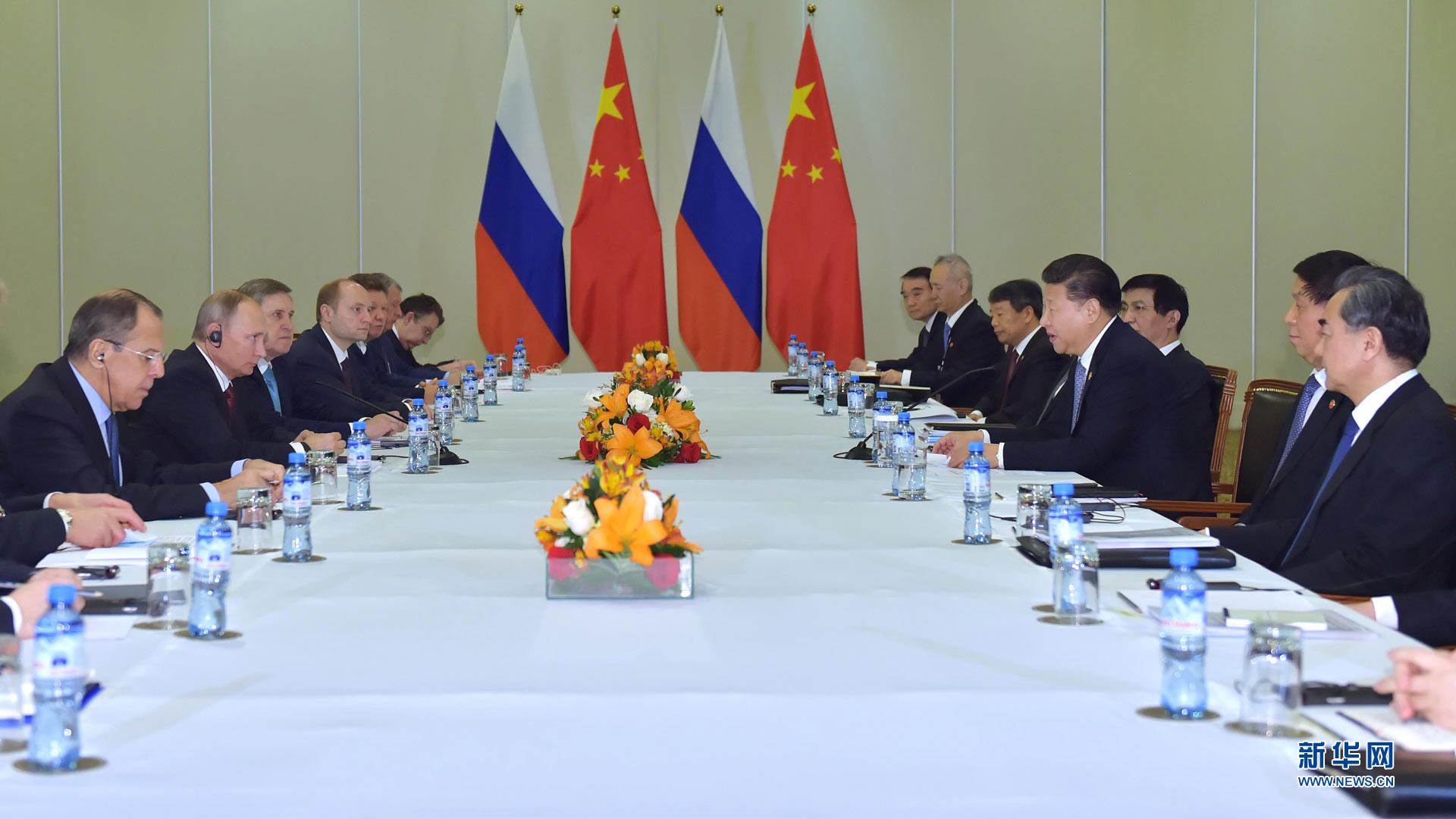 11月19日,國(guó)家主席習(xí)近平在利馬會(huì)見(jiàn)俄羅斯總統(tǒng)普京。 新華社記者李濤 攝2016-11-20