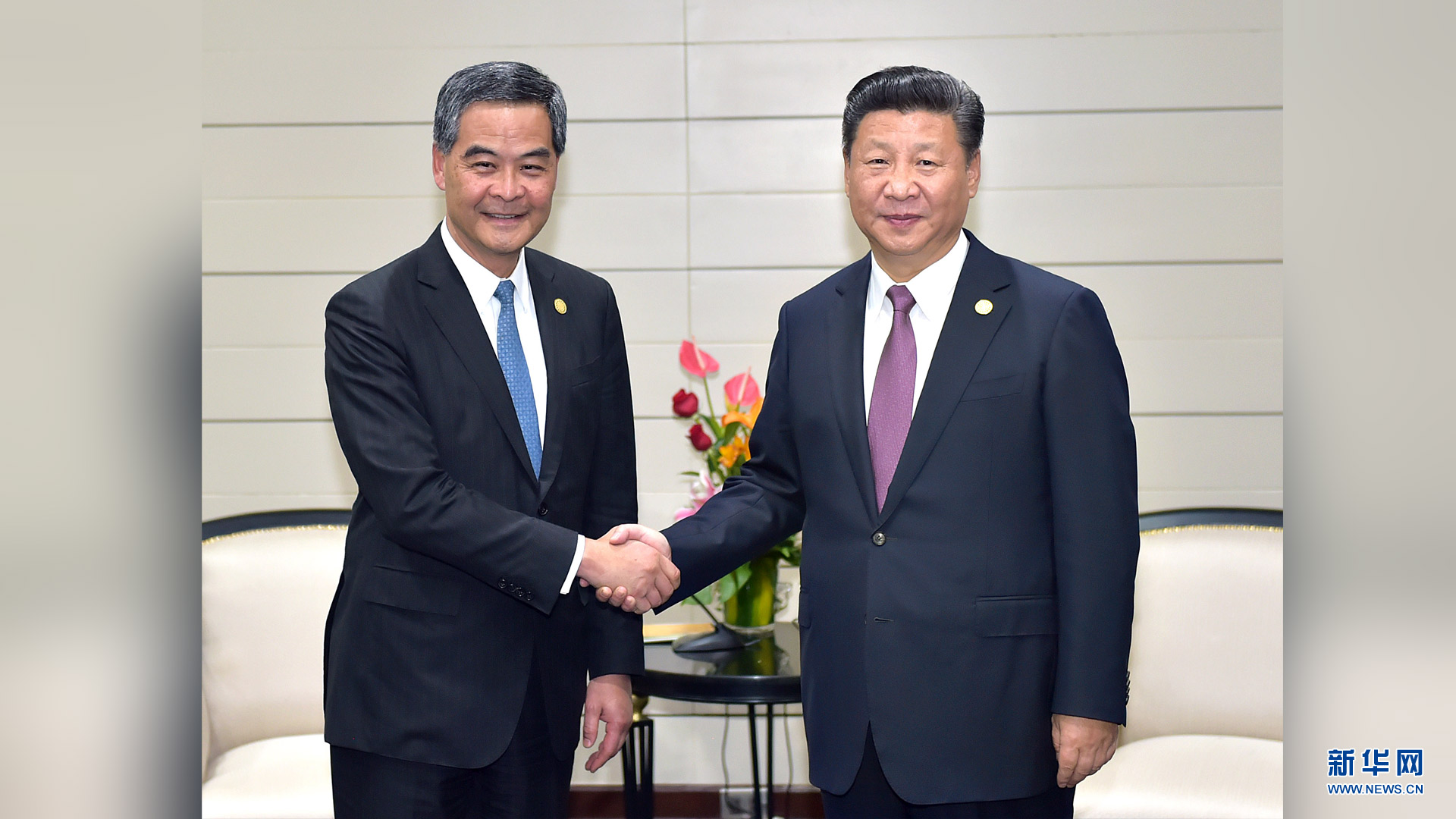 11月20日,國(guó)家主席習(xí)近平在秘魯首都利馬會(huì)見(jiàn)前來(lái)出席亞太經(jīng)合組織第二十四次領(lǐng)導(dǎo)人非正式會(huì)議的香港特別行政區(qū)行政長(zhǎng)官梁振英。新華社記者 李濤 攝2016-11-21