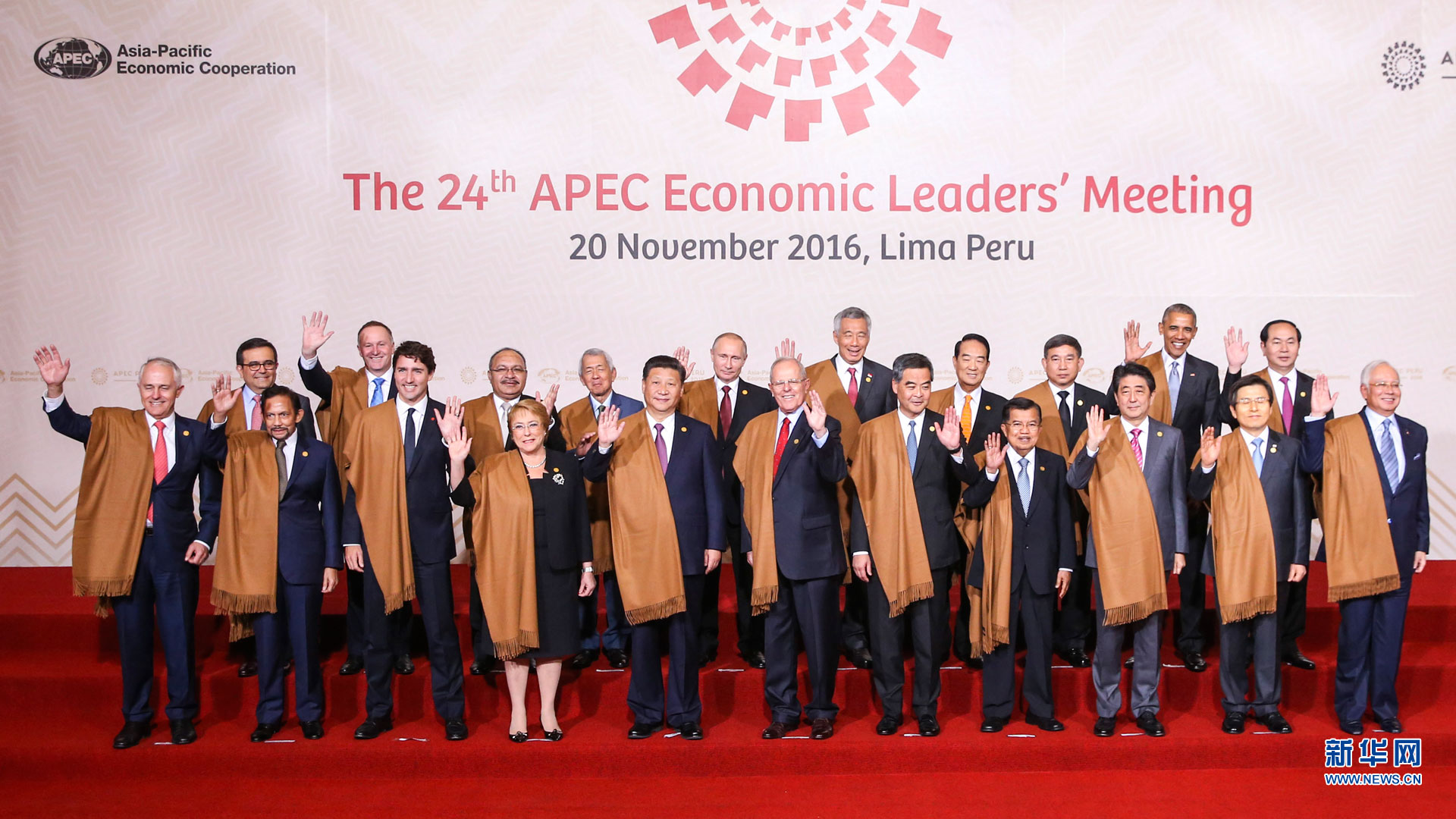 11月20日,亞太經(jīng)合組織第二十四次領(lǐng)導(dǎo)人非正式會(huì)議在秘魯利馬舉行。國(guó)家主席習(xí)近平出席并發(fā)表題為《面向未來(lái)開(kāi)拓進(jìn)取促進(jìn)亞太發(fā)展繁榮》的重要講話。這是會(huì)議期間,國(guó)家主席習(xí)近平同其他亞太經(jīng)合組織成員經(jīng)濟(jì)體領(lǐng)導(dǎo)人、代表合影。 新華社記者 丁林 攝2016-11-21