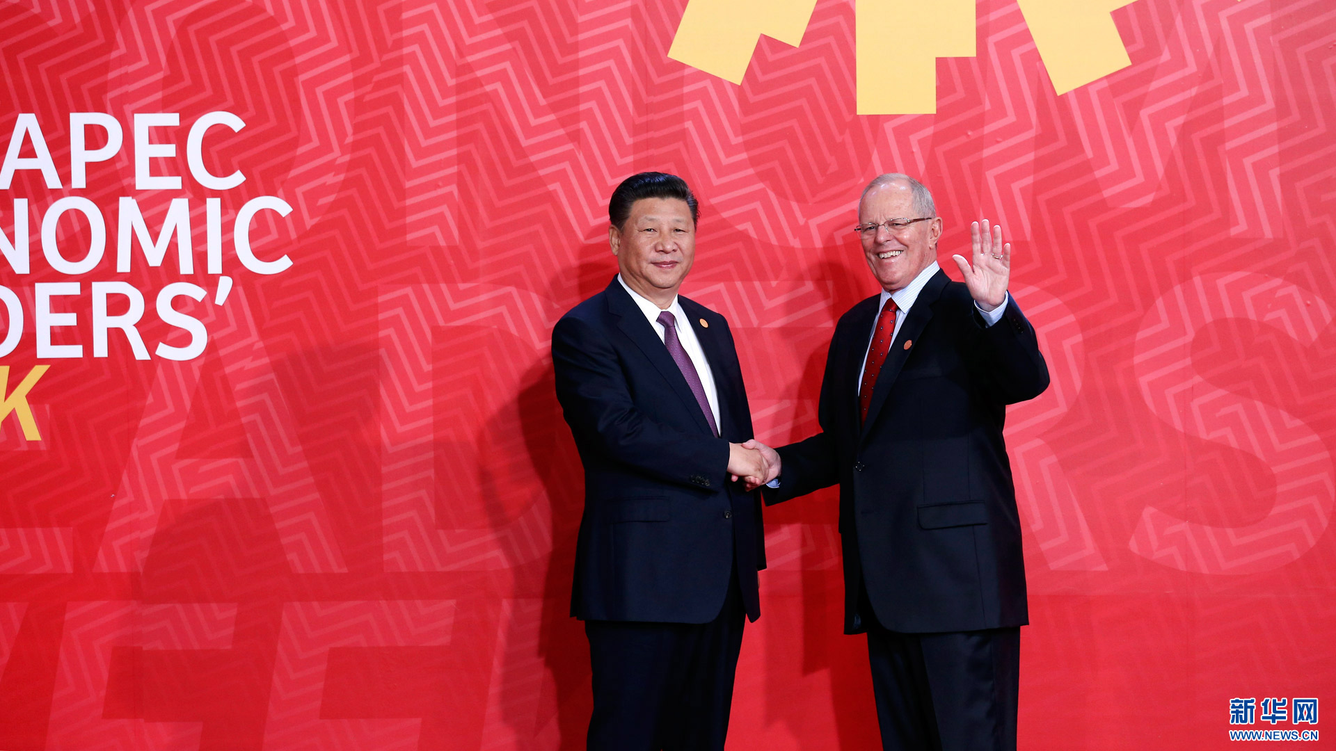 11月20日,亞太經(jīng)合組織第二十四次領(lǐng)導(dǎo)人非正式會(huì)議在秘魯利馬舉行。國(guó)家主席習(xí)近平出席并發(fā)表題為《面向未來(lái)開(kāi)拓進(jìn)取促進(jìn)亞太發(fā)展繁榮》的重要講話。這是會(huì)議開(kāi)始前,習(xí)近平受到秘魯總統(tǒng)庫(kù)琴斯基的熱情迎接。 新華社記者 龐興雷 攝2016-11-21