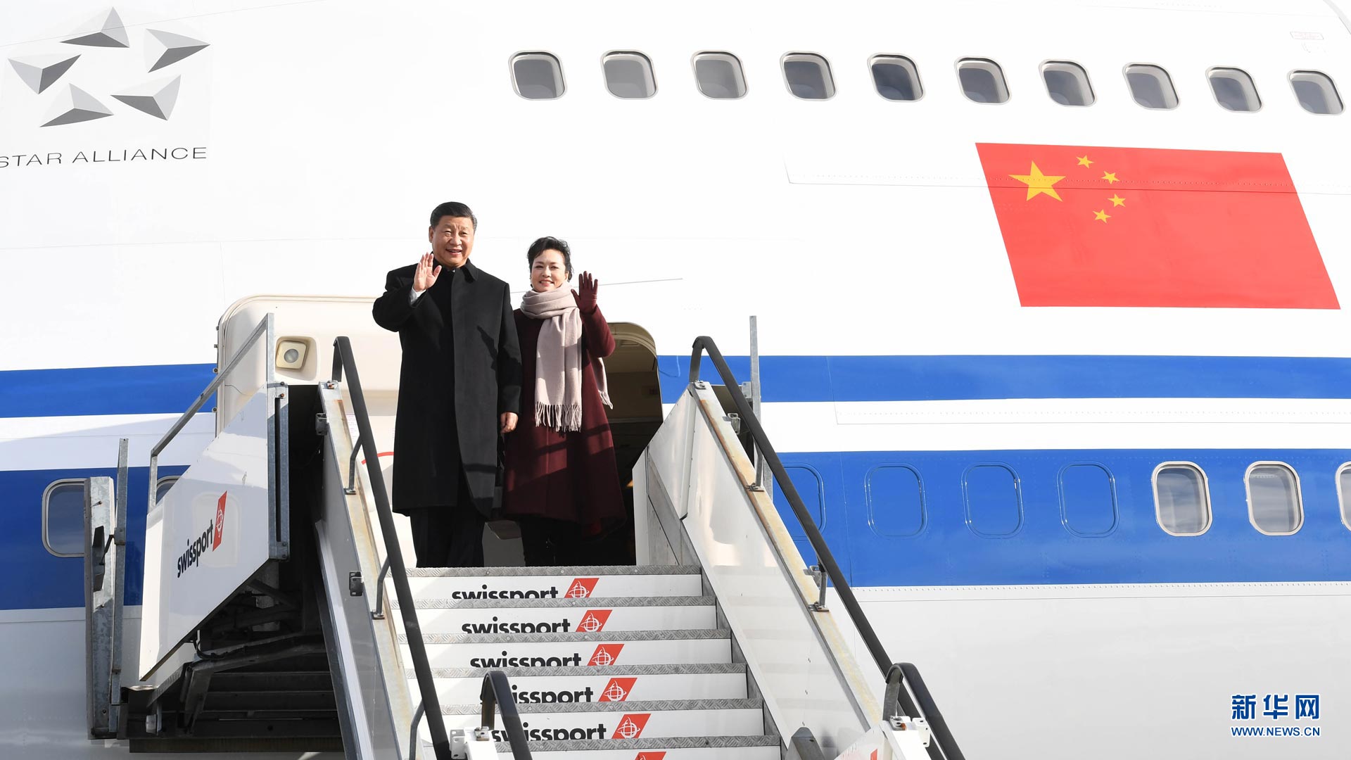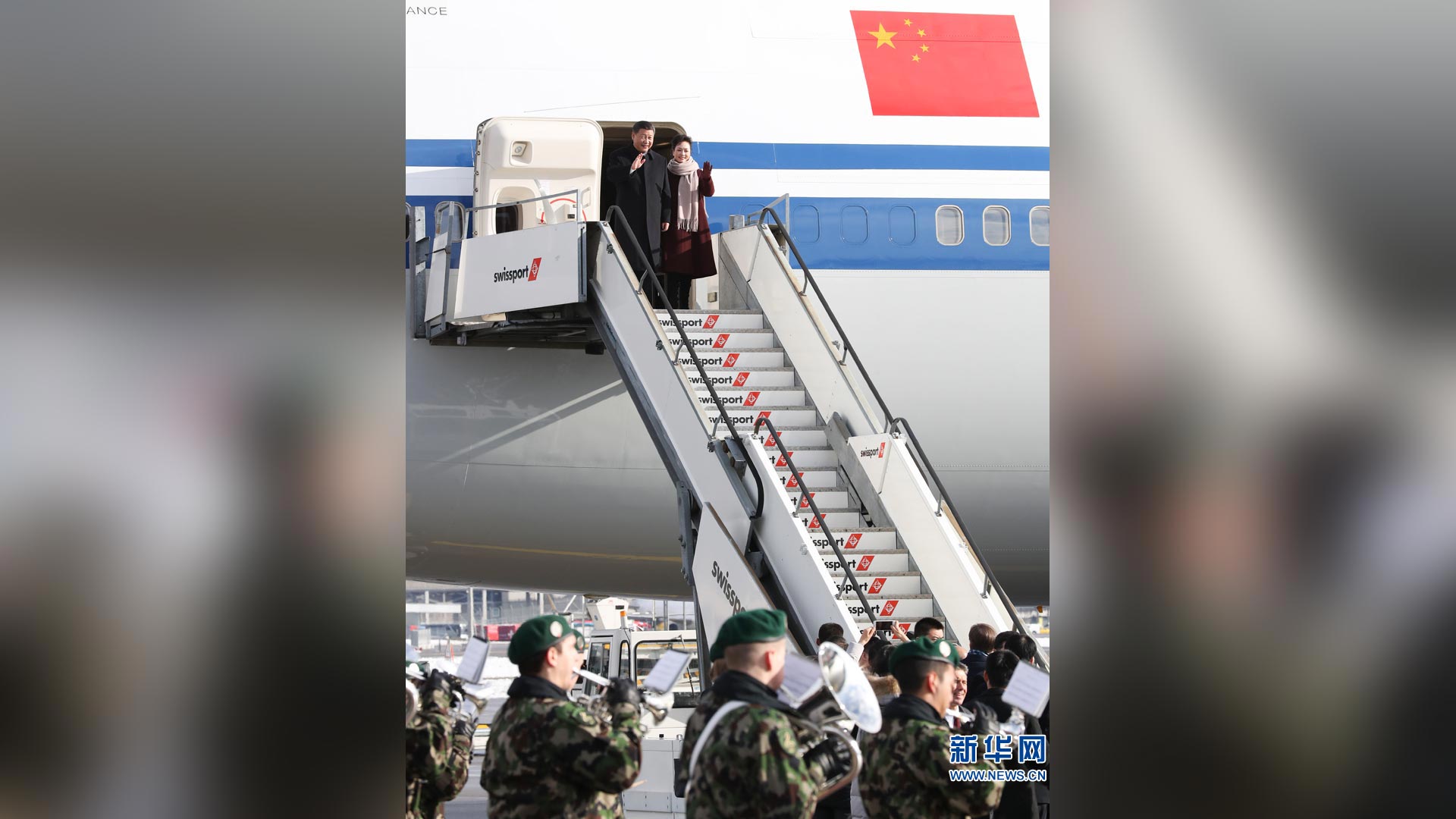 1月15日,國家主席習近平乘專機抵達蘇黎世,開始對瑞士聯(lián)邦進行國事訪問。 這是習近平和夫人彭麗媛步出艙門。新華社記者饒愛民攝2017-01-16