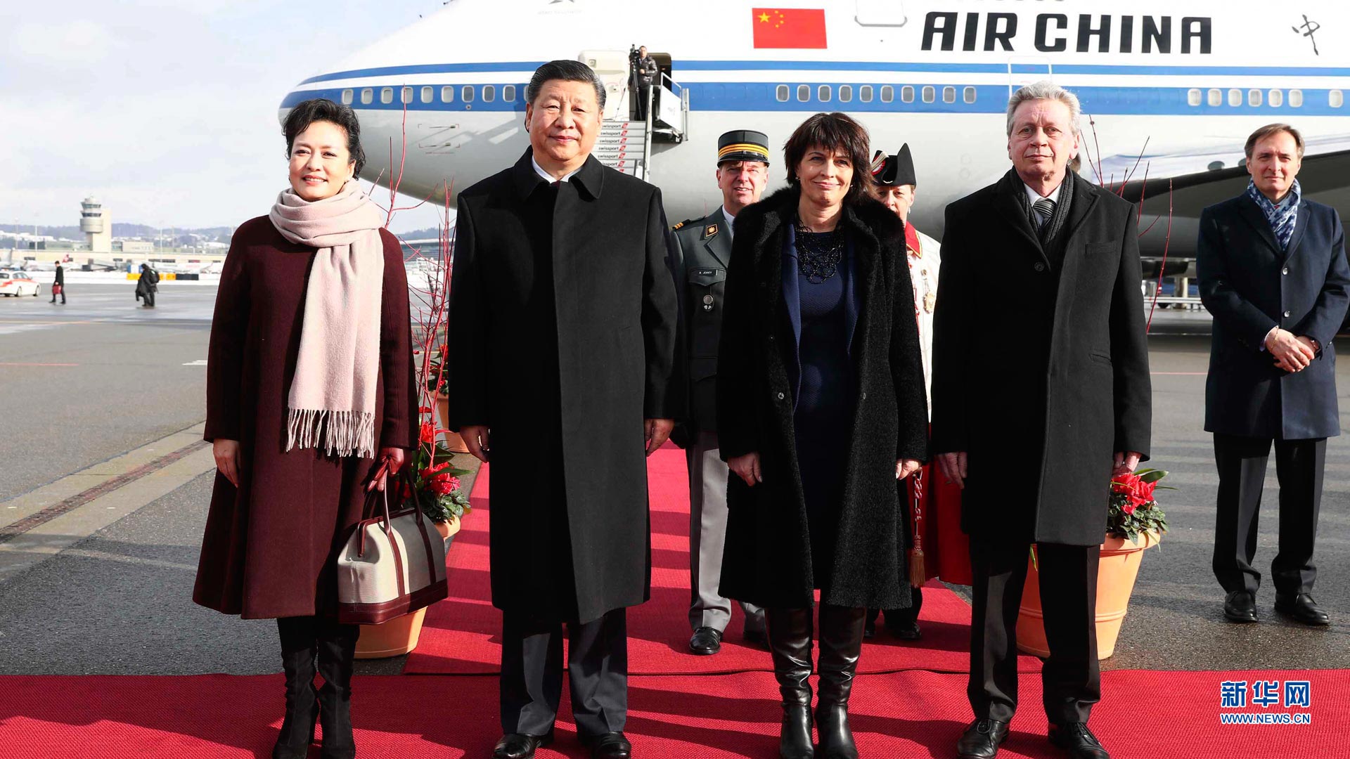 1月15日,國家主席習近平乘專機抵達蘇黎世,開始對瑞士聯(lián)邦進行國事訪問。這是瑞士聯(lián)邦主席洛伊特哈德在機場為習近平和夫人彭麗媛舉行隆重歡迎儀式。新華社記者蘭紅光攝2017-01-16