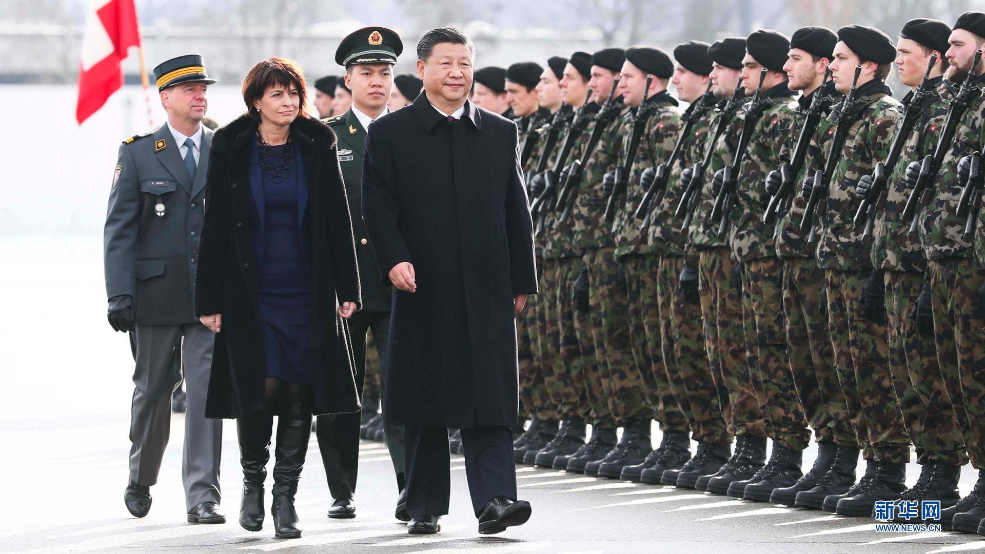 1月15日,國家主席習近平乘專機抵達蘇黎世,開始對瑞士聯(lián)邦進行國事訪問。這是習近平在瑞士聯(lián)邦主席洛伊特哈德陪同下檢閱儀仗隊。新華社記者蘭紅光攝2017-01-16