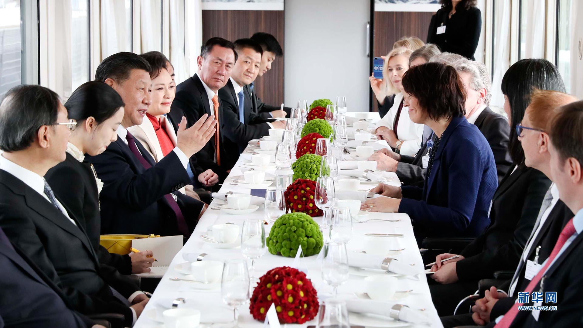 1月15日,國家主席習近平在瑞士聯(lián)邦主席洛伊特哈德陪同下,乘坐瑞士政府專列自蘇黎世前往瑞士首都伯爾尼。在專列行進過程中,習近平和夫人彭麗媛受洛伊特哈德主席夫婦邀請,在輕松愉快的氛圍中品茶暢談。這是習近平和夫人彭麗媛在伯爾尼克爾薩茨火車站觀看瑞士童聲合唱團表演。 新華社記者蘭紅光攝2017-01-16