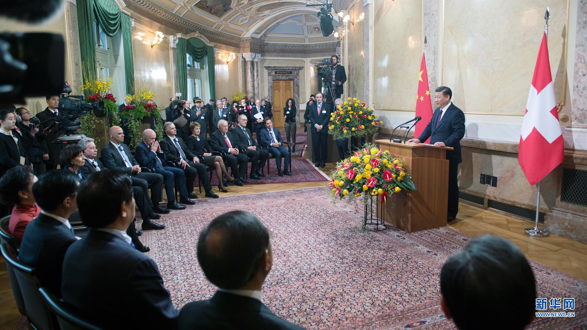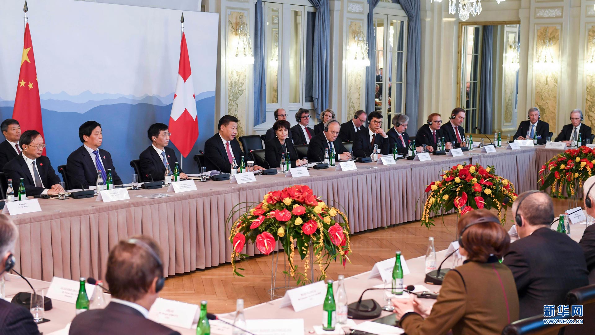 1月16日,國家主席習近平在伯爾尼同瑞士聯(lián)邦主席洛伊特哈德共同會見瑞士經(jīng)濟界代表。新華社記者 李學仁 攝2017-01-17