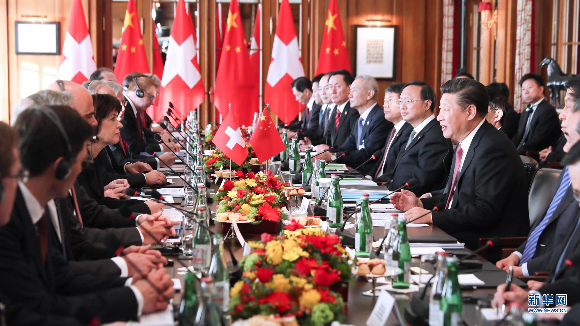 1月16日,國家主席習近平在伯爾尼會見瑞士聯(lián)邦國民院議長施塔爾和聯(lián)邦院議長比紹夫貝爾格。 新華社記者 謝環(huán)馳 攝2017-01-17