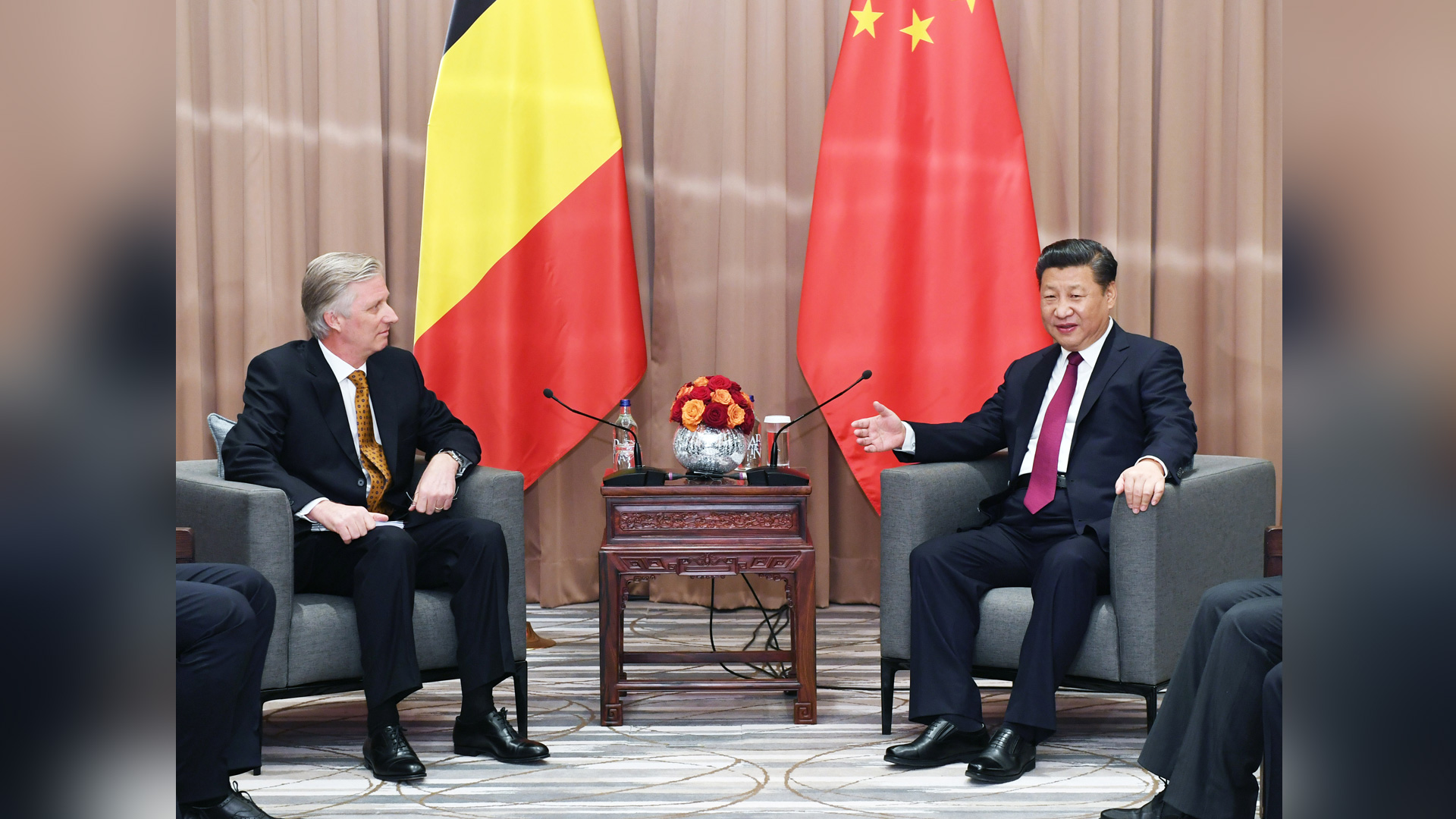 1月17日,國家主席習近平在瑞士達沃斯會見比利時國王菲利普。新華社記者 饒愛民 攝2017-01-18