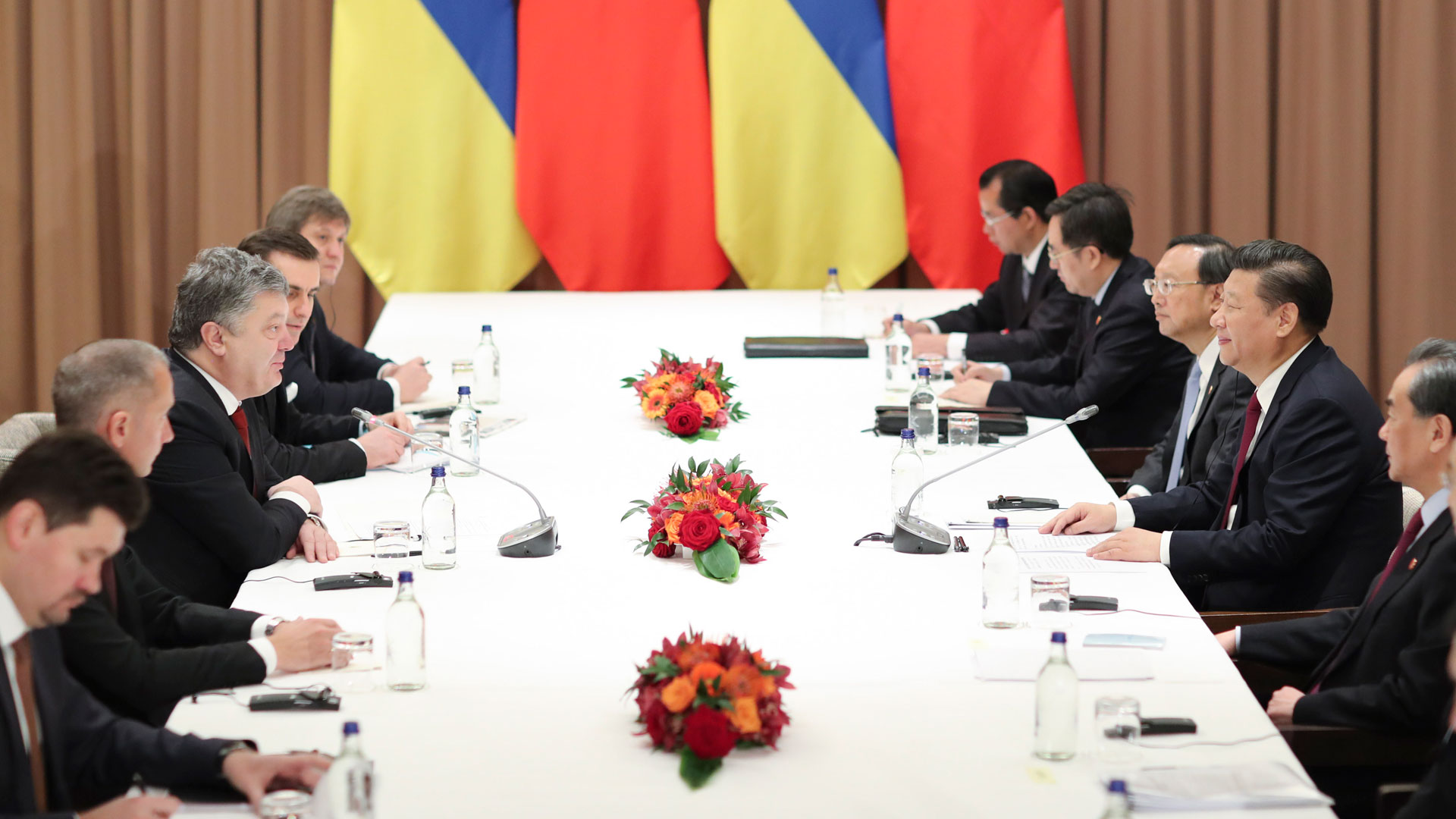 1月17日,國家主席習近平在瑞士達沃斯會見烏克蘭總統(tǒng)波羅申科。新華社記者 丁林 攝2017-01-18