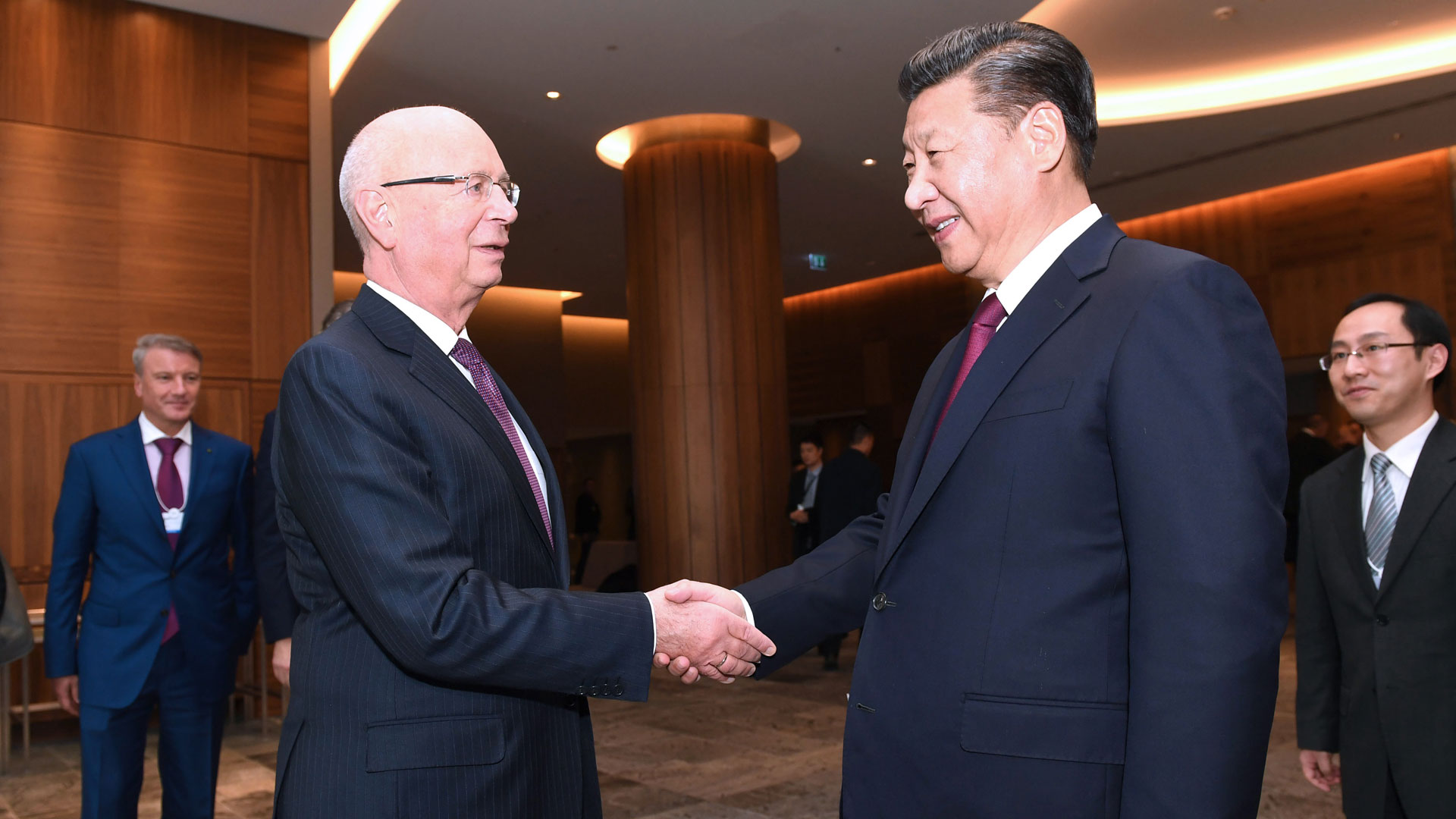 1月17日,國家主席習近平在瑞士達沃斯會見世界經(jīng)濟論壇主席施瓦布。 新華社記者 饒愛民 攝2017-01-18