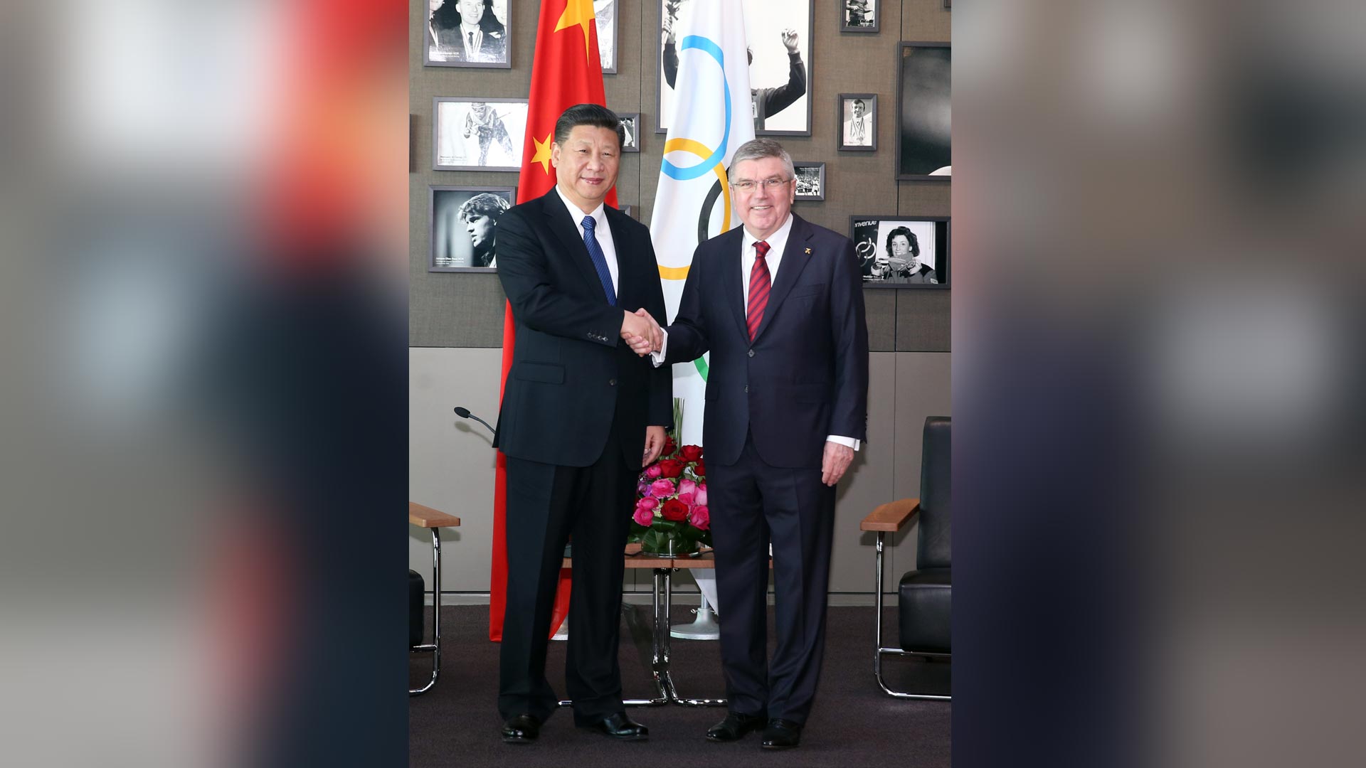 1月18日,國家主席習近平在瑞士洛桑國際奧林匹克博物館會見國際奧林匹克委員會主席巴赫。 新華社記者 姚大偉 攝2017-01-19