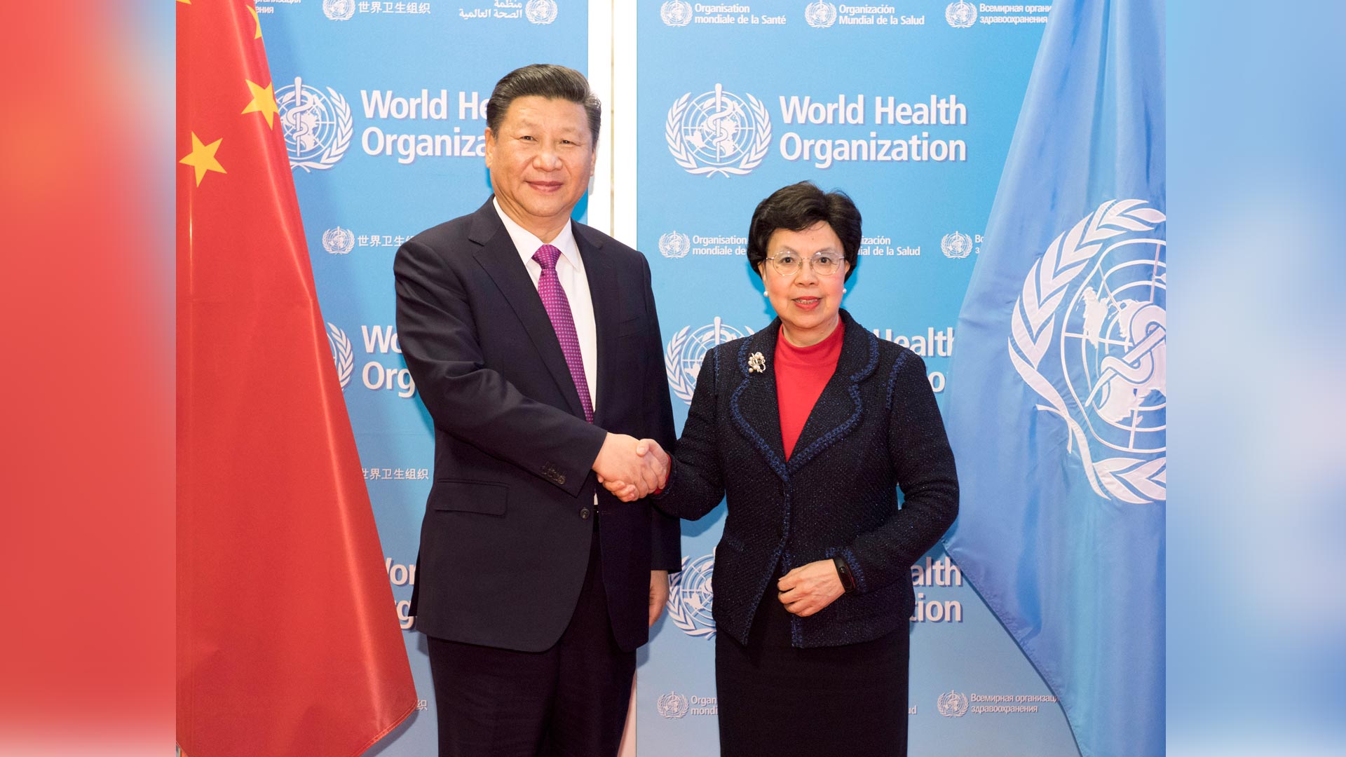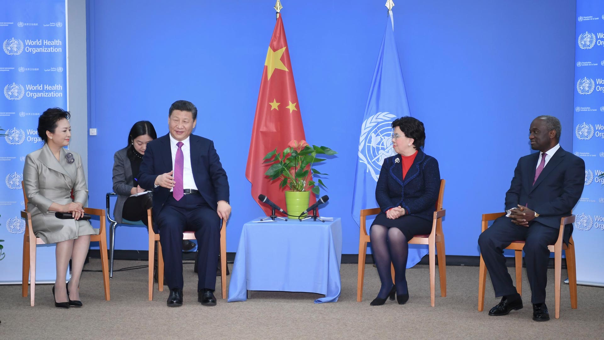 1月18日,國家主席習近平在瑞士日內(nèi)瓦訪問世界衛(wèi)生組織并會見陳馮富珍總干事。 新華社記者 李學仁 攝2017-01-19