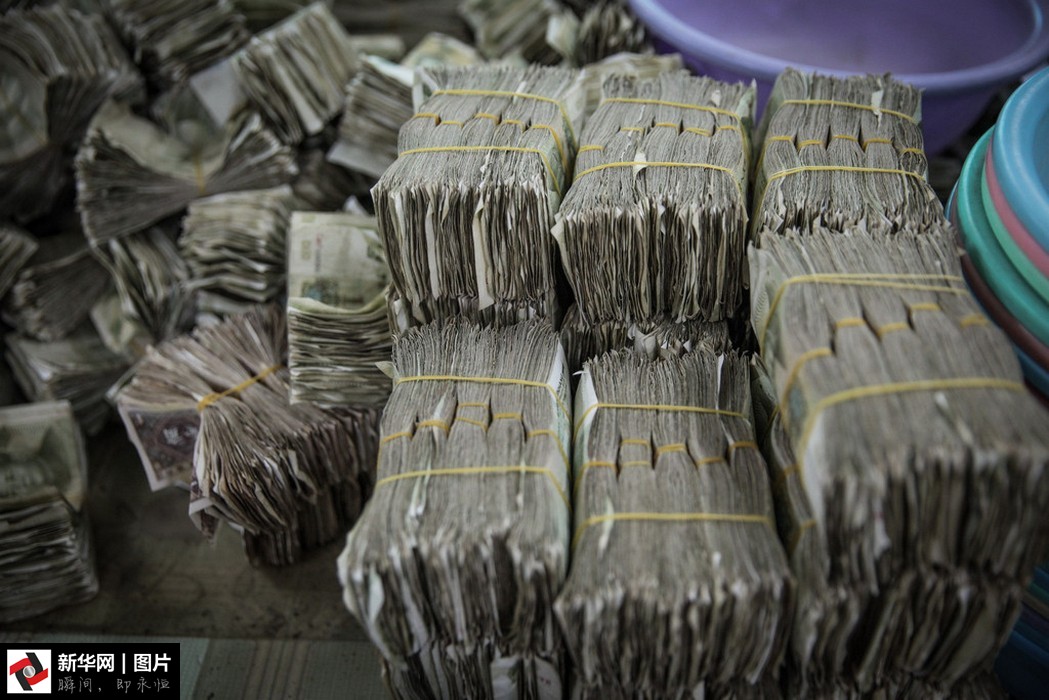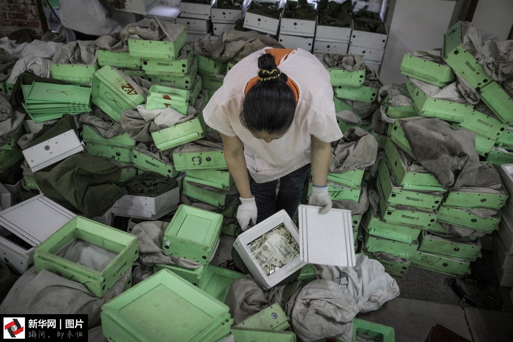 點(diǎn)鈔員從成堆的投幣箱內(nèi)清理出零鈔準(zhǔn)備清點(diǎn)。