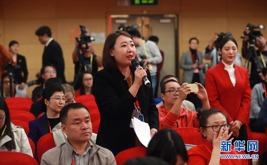 ??? 10月20日,十九大新聞中心舉辦集體采訪活動(dòng),主題為“文化發(fā)展開(kāi)創(chuàng)新局面”。圖為中國(guó)國(guó)際廣播電臺(tái)記者提問(wèn)。新華網(wǎng) 陳杰攝