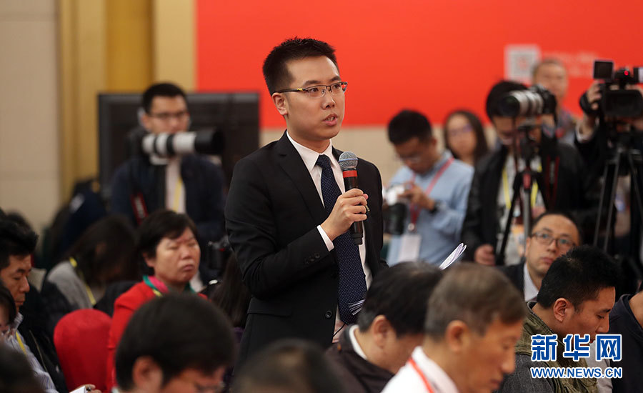 10月21日,十九大新聞中心舉辦記者招待會(huì),邀請(qǐng)中共中央統(tǒng)戰(zhàn)部常務(wù)副部長(zhǎng)張裔炯、副部長(zhǎng)冉萬祥,中共中央對(duì)外聯(lián)絡(luò)部副部長(zhǎng)郭業(yè)洲介紹黨的統(tǒng)一戰(zhàn)線工作和黨的對(duì)外交往情況,并回答記者提問。圖為中央電視臺(tái)、中國(guó)國(guó)際電視臺(tái)記者提問。新華網(wǎng) 郝廣鵬攝