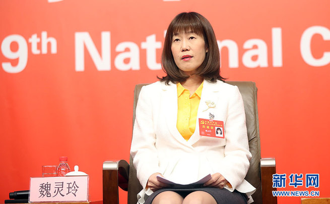 ??? 10月21日,十九大新聞中心舉辦集體采訪活動,主題為“農(nóng)業(yè)科技創(chuàng)新”。圖為中國農(nóng)業(yè)科學院農(nóng)業(yè)環(huán)境與可持續(xù)研究所研究員、農(nóng)業(yè)部休閑農(nóng)業(yè)重點實驗室主任魏靈玲。新華網(wǎng) 郝廣鵬攝