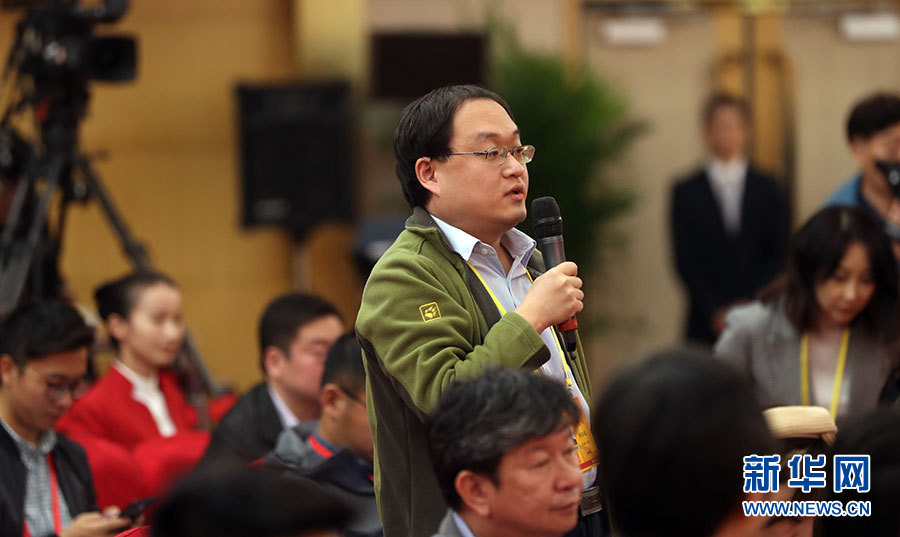 10月21日,十九大新聞中心舉辦集體采訪活動(dòng),主題為“農(nóng)業(yè)科技創(chuàng)新”。圖為經(jīng)濟(jì)日報(bào)記者提問。新華網(wǎng) 郝廣鵬攝