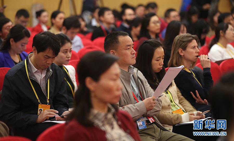10月21日,十九大新聞中心舉辦集體采訪活動,主題為“農(nóng)業(yè)科技創(chuàng)新”。圖為現(xiàn)場記者。新華網(wǎng) 郝廣鵬攝