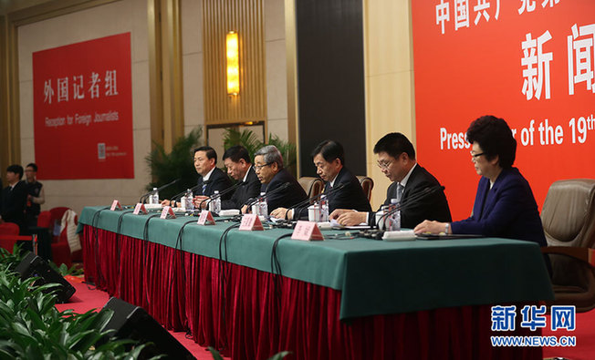 ??? 10月22日,十九大新聞中心舉辦記者招待會,邀請教育部、民政部、人力資源社會保障部、住房城鄉(xiāng)建設(shè)部、國家衛(wèi)生計生委相關(guān)負(fù)責(zé)人介紹滿足人民新期待,保障改善民生有關(guān)情況,并回答記者提問。圖為記者招待會現(xiàn)場。新華網(wǎng) 郝廣鵬攝