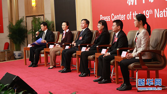 10月23日,十九大新聞中心舉辦集體采訪活動,主題為“打好生態(tài)環(huán)保攻堅(jiān)戰(zhàn)”。圖為集體采訪活動現(xiàn)場。新華網(wǎng) 郝廣鵬攝