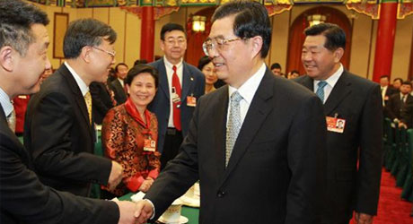 胡錦濤等分別看望出席全國政協(xié)十一屆四次會(huì)議委員
