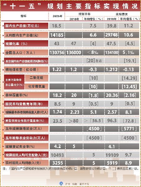 “十一五”規(guī)劃主要指標(biāo)實現(xiàn)情況