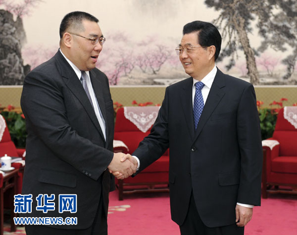 ??? 12月21日,國家主席胡錦濤在北京中南海會見來京述職的澳門特別行政區(qū)行政長官崔世安。 新華社記者 張鐸 攝