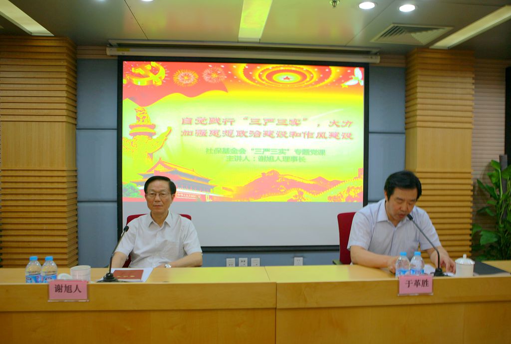 5月25日下午,全國(guó)社會(huì)保障基金理事會(huì)謝旭人理事長(zhǎng)為全體干部職工講授了題為“自覺(jué)踐行三嚴(yán)三實(shí),大力加強(qiáng)思想政治建設(shè)和作風(fēng)建設(shè)”的專(zhuān)題黨課,同時(shí)對(duì)開(kāi)展“三嚴(yán)三實(shí)”專(zhuān)題教育進(jìn)行了動(dòng)員。于革勝副理事長(zhǎng)主持會(huì)議,中央組織部干部四局張晨光同志應(yīng)邀參加。