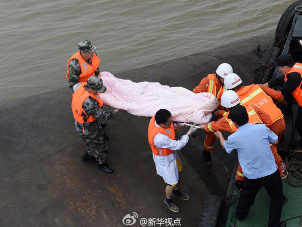 新華網(wǎng)北京6月2日電 據(jù)新華社“新華視點”微博報道,6月2日,救援人員在沉船現(xiàn)場救起一名幸存者。 (新華社記者肖藝九攝)?