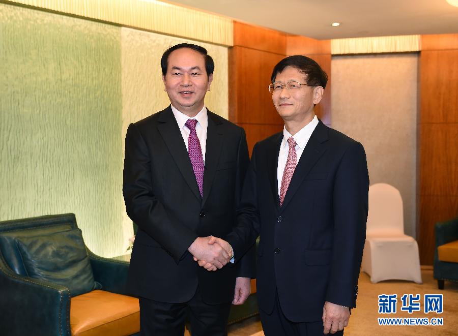??? 10月23日,中共中央政治局委員、中央政法委書記孟建柱在北京會見出席“安全促發(fā)展”中國東盟執(zhí)法安全合作部長級會議的越共中央政治局委員、公安部部長陳大光。新華社記者張領攝