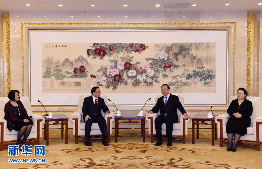 ??? 11月2日,中共中央書記處書記、全國(guó)政協(xié)副主席、中國(guó)經(jīng)濟(jì)社會(huì)理事會(huì)主席杜青林在北京會(huì)見臺(tái)灣非營(yíng)利組織代表大陸交流團(tuán)。 新華社記者 張領(lǐng)攝