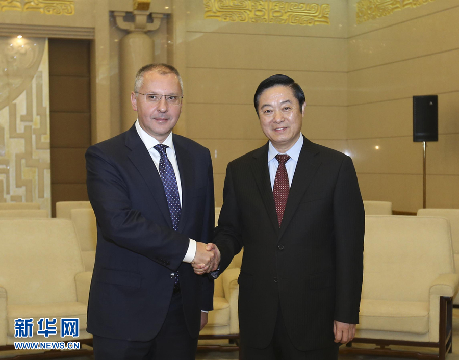 11月3日,中共中央政治局委員、中央書記處書記、中宣部部長劉奇葆在北京會見歐洲社會黨主席斯塔尼舍夫。 新華社記者 丁林 攝