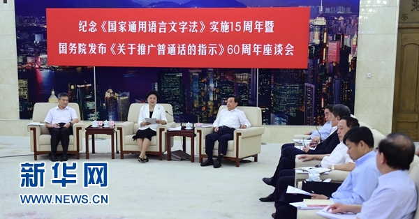 劉延東在紀念《國家通用語言文字法》實施15周年暨國務院發(fā)布《關于推廣普通話的指示》60周年座談會上強調