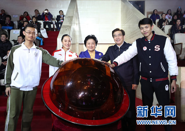 12月16日,國務(wù)院副總理劉延東,北京市委書記、北京冬奧組委主席郭金龍在北京首都體育館出席第三屆全國大眾冰雪季啟動儀式。 新華社記者王曄 攝