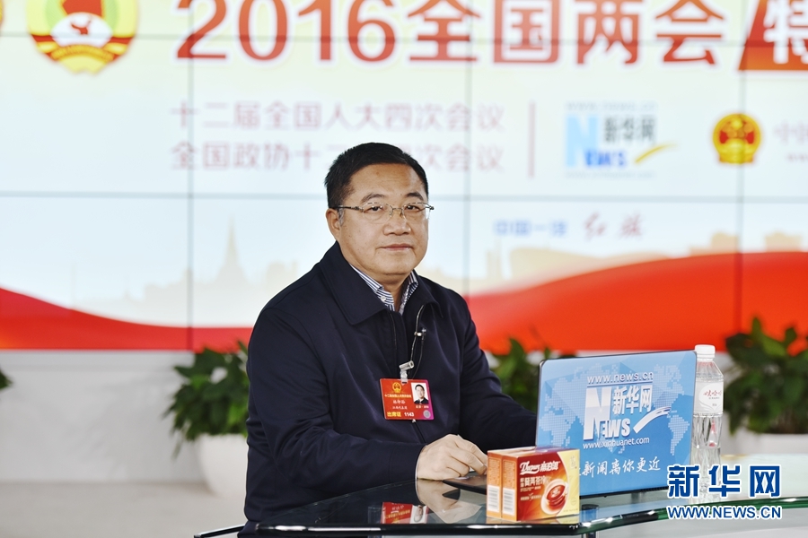 2016年3月12日,全國人大代表、正邦集團(tuán)董事局主席、總裁林印孫做客新華網(wǎng)兩會(huì)訪談直播間。圖為林印孫在訪談現(xiàn)場。新華網(wǎng) 郭小天 攝