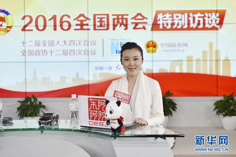 2016年3月12日,全國人大代表、正邦集團(tuán)董事局主席、總裁林印孫做客新華網(wǎng)兩會訪談直播間。圖為新華網(wǎng)主持人張姣。新華網(wǎng) 郭小天 攝