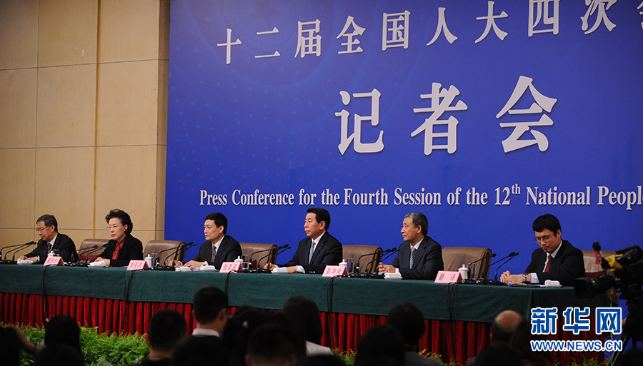 ?????十二屆全國人大四次會議新聞中心于3月12日(星期六)14時30分在梅地亞中心多功能廳舉行記者會,邀請國務院國有資產監(jiān)督管理委員會主任肖亞慶、副主任張喜武、副主任黃丹華和副秘書長、新聞發(fā)言人彭華崗就“國企改革”的相關問題回答中外記者的提問。圖為肖亞慶回答記者提問。新華網/中國政府網 陳杰 攝