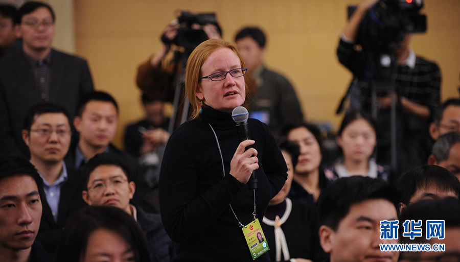 ?????十二屆全國人大四次會(huì)議新聞中心于3月12日(星期六)14時(shí)30分在梅地亞中心多功能廳舉行記者會(huì),邀請(qǐng)國務(wù)院國有資產(chǎn)監(jiān)督管理委員會(huì)主任肖亞慶、副主任張喜武、副主任黃丹華和副秘書長(zhǎng)、新聞發(fā)言人彭華崗就“國企改革”的相關(guān)問題回答中外記者的提問。圖為金融時(shí)報(bào)記者提問。新華網(wǎng)/中國政府網(wǎng) 陳杰 攝