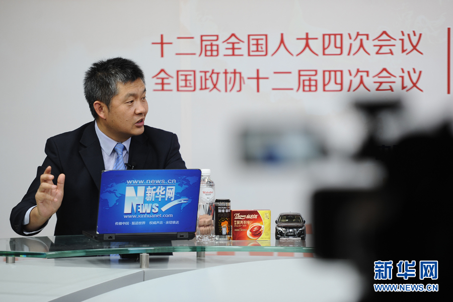 ??? 2016年3月12日,全國政協(xié)委員,內(nèi)蒙古蒙草公司董事長兼總經(jīng)理王召明做客新華網(wǎng)兩會訪談。圖為王召明在訪談現(xiàn)場。新華網(wǎng) 賈海元 攝