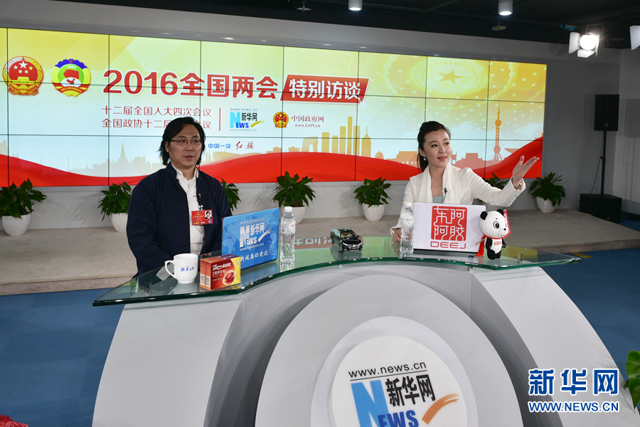 3月13日,全國人大代表、中國文聯(lián)全委、中國音樂家協(xié)會副主席,上海音樂家協(xié)會副主席、上海音樂學院副院長廖昌永做客新華網(wǎng)2016全國兩會特別訪談,與新華網(wǎng)網(wǎng)友在線交流。圖為廖昌永在訪談現(xiàn)場。新華網(wǎng) 郭小天 攝
