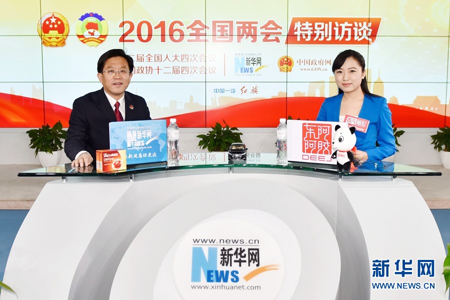 ????2016年3月13日,最高人民檢察院辦公廳主任、新聞辦主任王松苗做客新華網兩會訪談直播間,與新華網網友在線交流。圖為王松苗。新華網 付宇鵬 攝