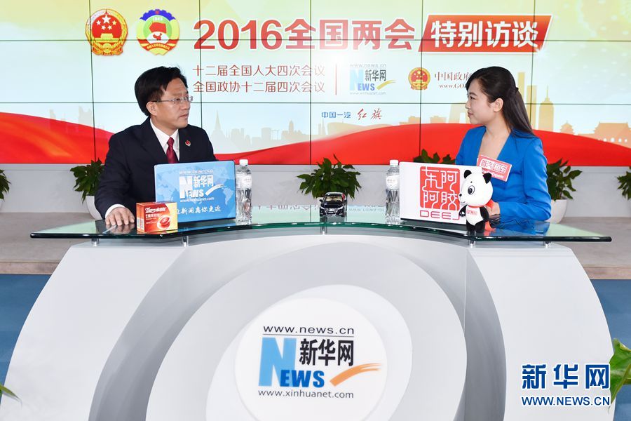 ????2016年3月13日,最高人民檢察院辦公廳主任、新聞辦主任王松苗做客新華網(wǎng)兩會(huì)訪談直播間。圖為王松苗回答主持人提問。新華網(wǎng) 付宇鵬 攝