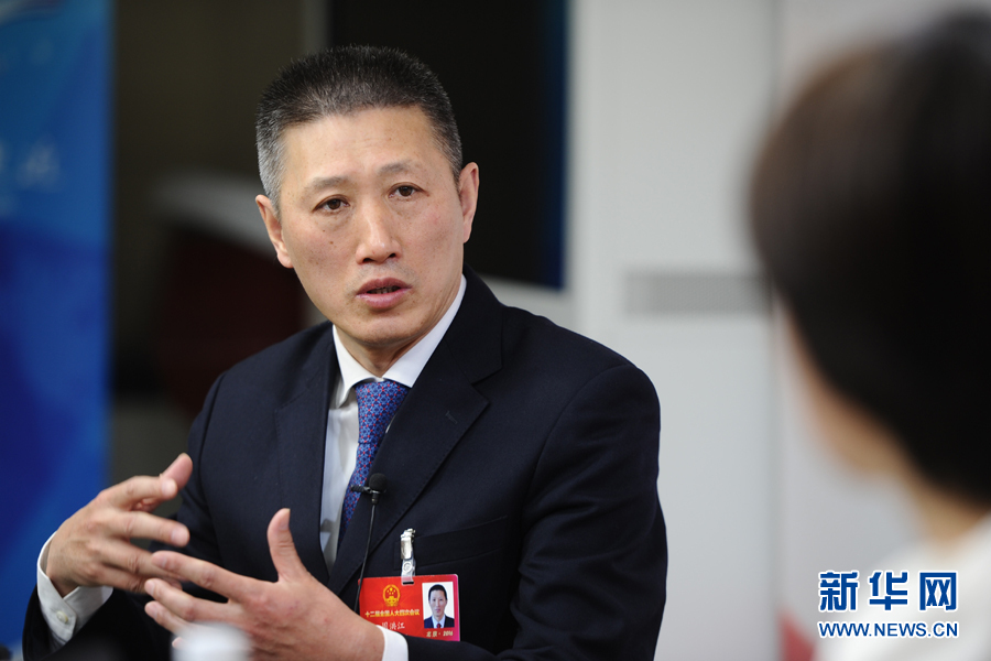 ??? 2016年3月13日,全國人大代表,煙臺張裕葡萄釀酒股份有限公司總經(jīng)理周洪江做客新華網(wǎng)兩會訪談。圖為周洪江在訪談現(xiàn)場。新華網(wǎng) 盧志佳 攝