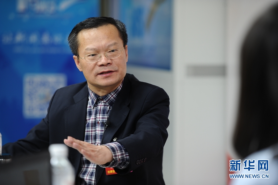 2016年3月14日,全國人大代表、湖南省益陽市委書記胡忠雄做客新華網(wǎng)兩會(huì)訪談直播間。圖為胡忠雄在回答主持人提問。新華網(wǎng) 盧志佳 攝