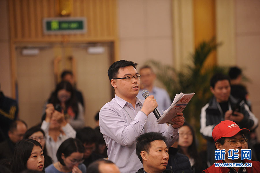 十二屆全國(guó)人大四次會(huì)議新聞中心于3月15日(星期二)10時(shí)在梅地亞中心多功能廳舉行記者會(huì),邀請(qǐng)住房和城鄉(xiāng)建設(shè)部部長(zhǎng)陳政高、副部長(zhǎng)陸克華、副部長(zhǎng)倪虹就“棚戶區(qū)改造和房地產(chǎn)工作”的相關(guān)問題回答中外記者的提問。圖為團(tuán)結(jié)報(bào)、團(tuán)結(jié)網(wǎng)記者提問。新華網(wǎng)/中國(guó)政府網(wǎng) 陳杰 攝