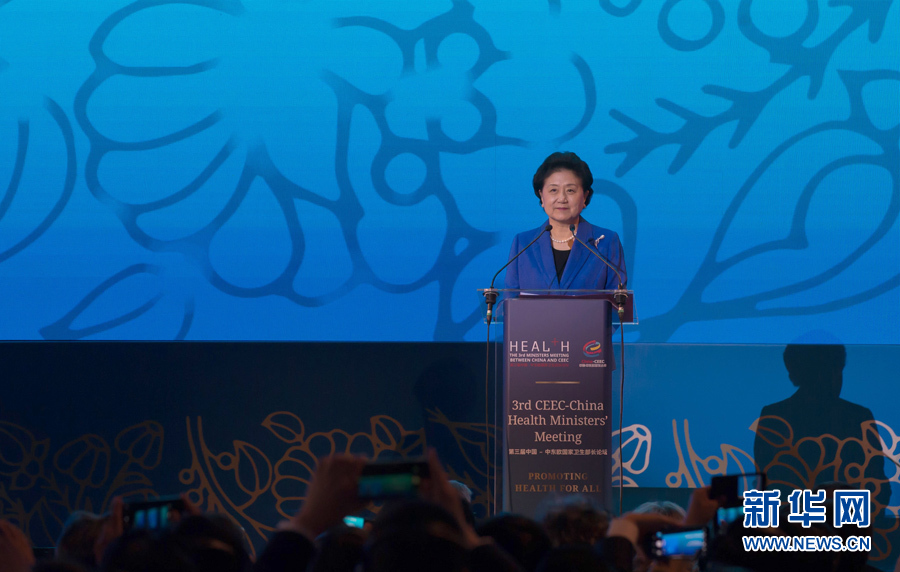 6月19日,第三屆中國(guó)-中東歐國(guó)家衛(wèi)生部長(zhǎng)論壇在匈牙利布達(dá)佩斯舉行,中國(guó)國(guó)務(wù)院副總理劉延?xùn)|出席開(kāi)幕式并致辭。新華社發(fā)(弗爾季·奧蒂洛攝)