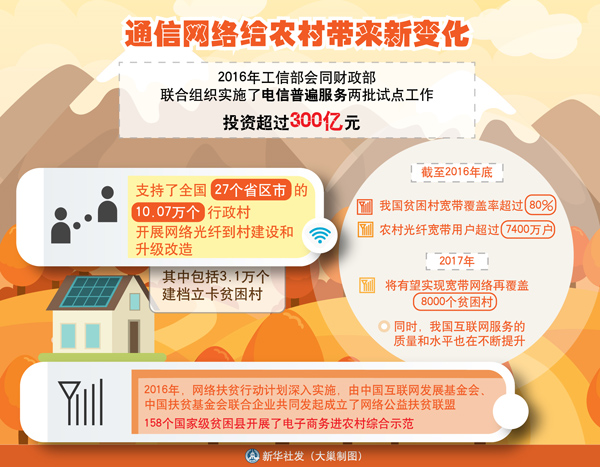 近年來,我國加大對中西部地區(qū)和農(nóng)村貧困地區(qū)移動互聯(lián)網(wǎng)基礎(chǔ)設(shè)施建設(shè)的投資力度,加快推進貧困地區(qū)網(wǎng)絡(luò)全覆蓋,著力降低貧困群眾享受信息生活門檻。截至2016年底,我國貧困村寬帶覆蓋率超過80%,農(nóng)村光纖寬帶用戶超過7400萬戶。今年將有望實現(xiàn)寬帶網(wǎng)絡(luò)再覆蓋8000個貧困村。同時,我國互聯(lián)網(wǎng)服務(wù)的質(zhì)量和水平也在不斷提升。